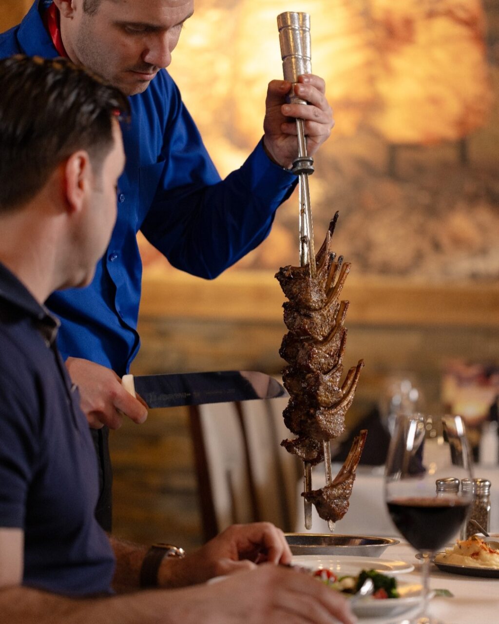 The Golden Steak®️ is the most noble part of the top sirloin, expertly seasoned with salt and then decadently enveloped in 24-karat edible gold foil. A bespoke cart approaches your table, presenting the Golden Steak®️ in all its splendor, and the Gaucho Chef then artfully carves this luxurious meat selection with a golden knife.
